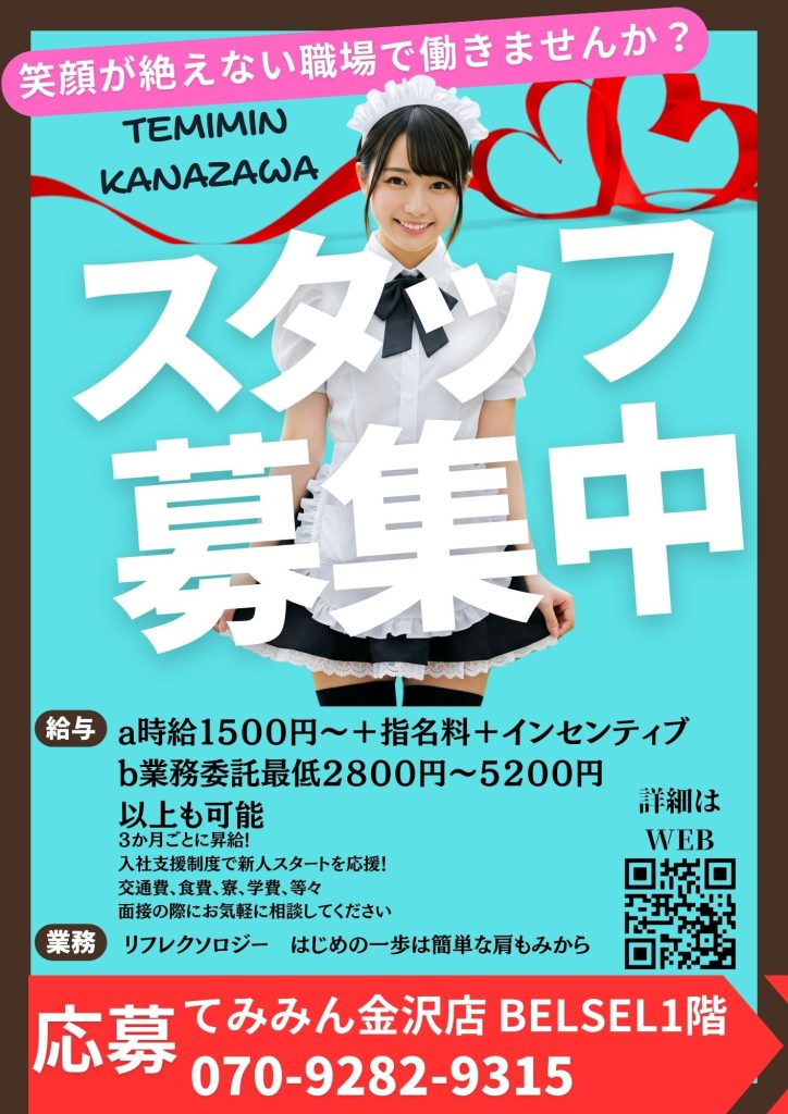 | 歓迎条件 | ・リフレクソロジー、整体、マッサージ経験者 ・接客が好きな方 ・かわいい制服で働きたい方 ・長期で勤務できる方 |